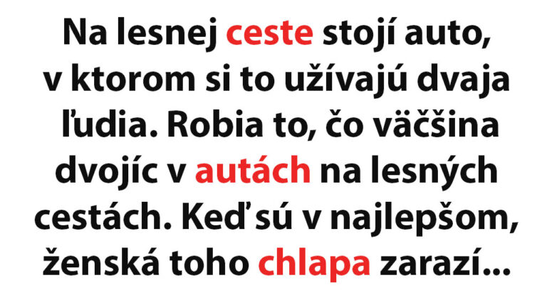 Na lesnej ceste stojí auto, v ktorom si to užívajú dvaja ľudia. Robia to, čo väčšina dvojíc v autách na lesných cestách. Keď sú v najlepšom, ženská toho chlapa zarazí a hovorí: „Prepáč, mala som ti to asi povedať vopred, zbehlo sa to tak rýchlo, no, vieš, ja som prosti*útka a účtujem si za číslo 30 euro.“