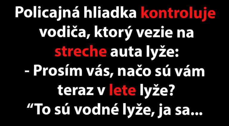Policajná hliadka kontroluje vodiča, ktorý vezie na streche auta lyže: